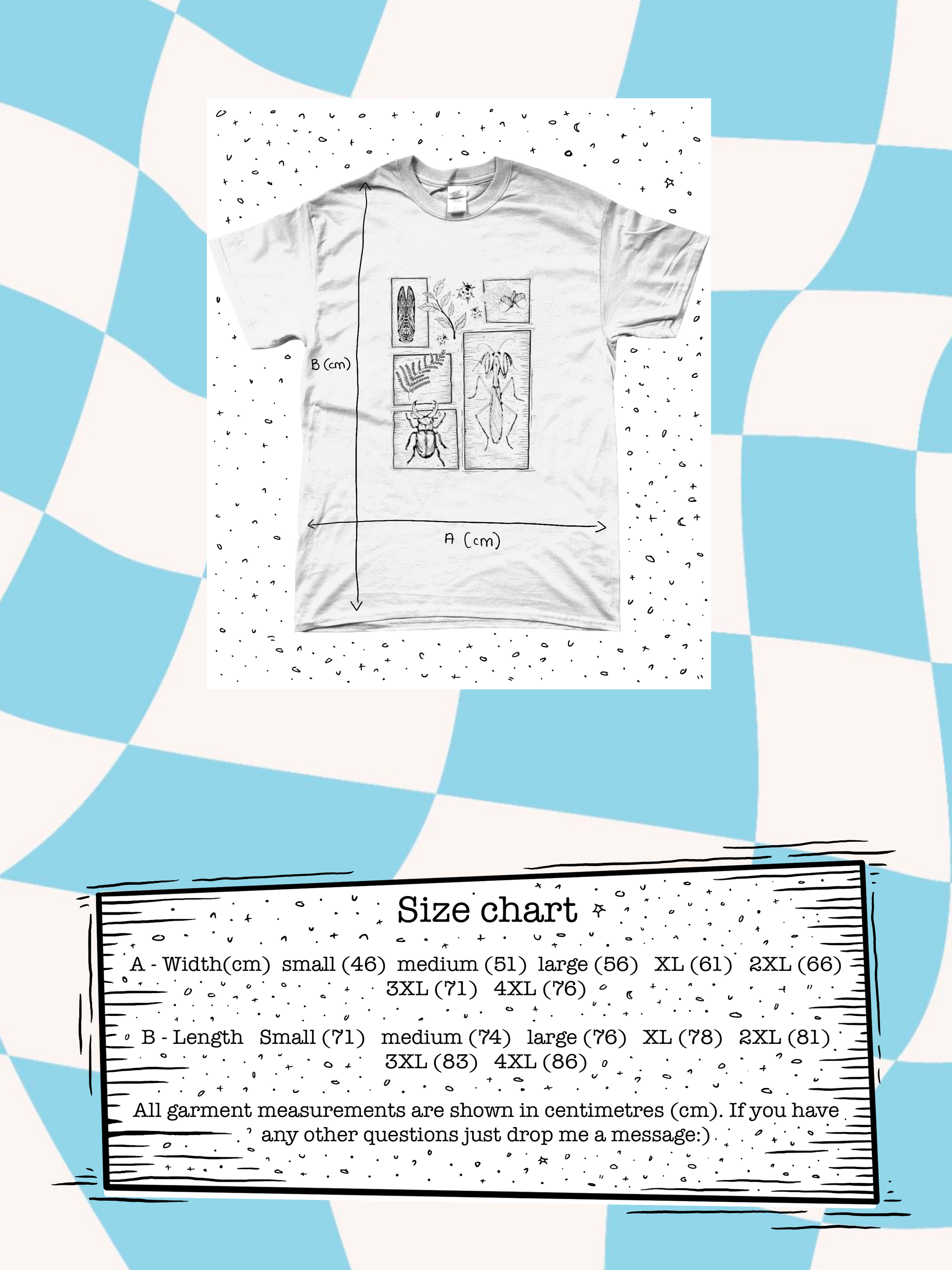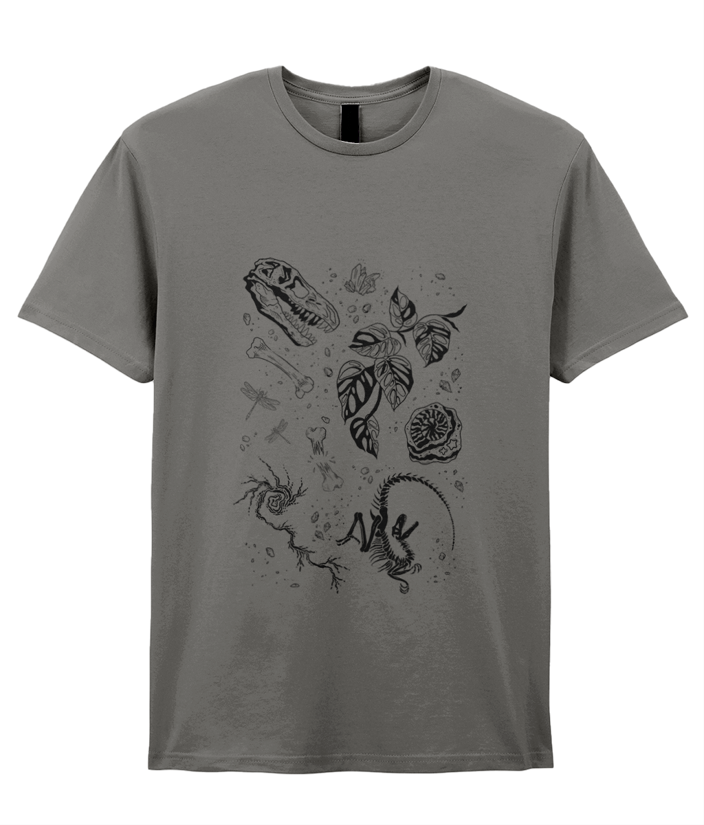 My Dinosaur Fossil shirt comes in six different colours! White, sand, forest green, blue, red and charcoal grey! The red, blue, green and grey shirts are great for a more subtle print design with the shirts themselves being a little darker, whilst the white and sand versions make the black print really pop! It's a super soft material and a unisex fit so suitable for everyone and available in a range of sizes. The perfect tee to wear for all of your fossil hunting adventures and cozy fits!