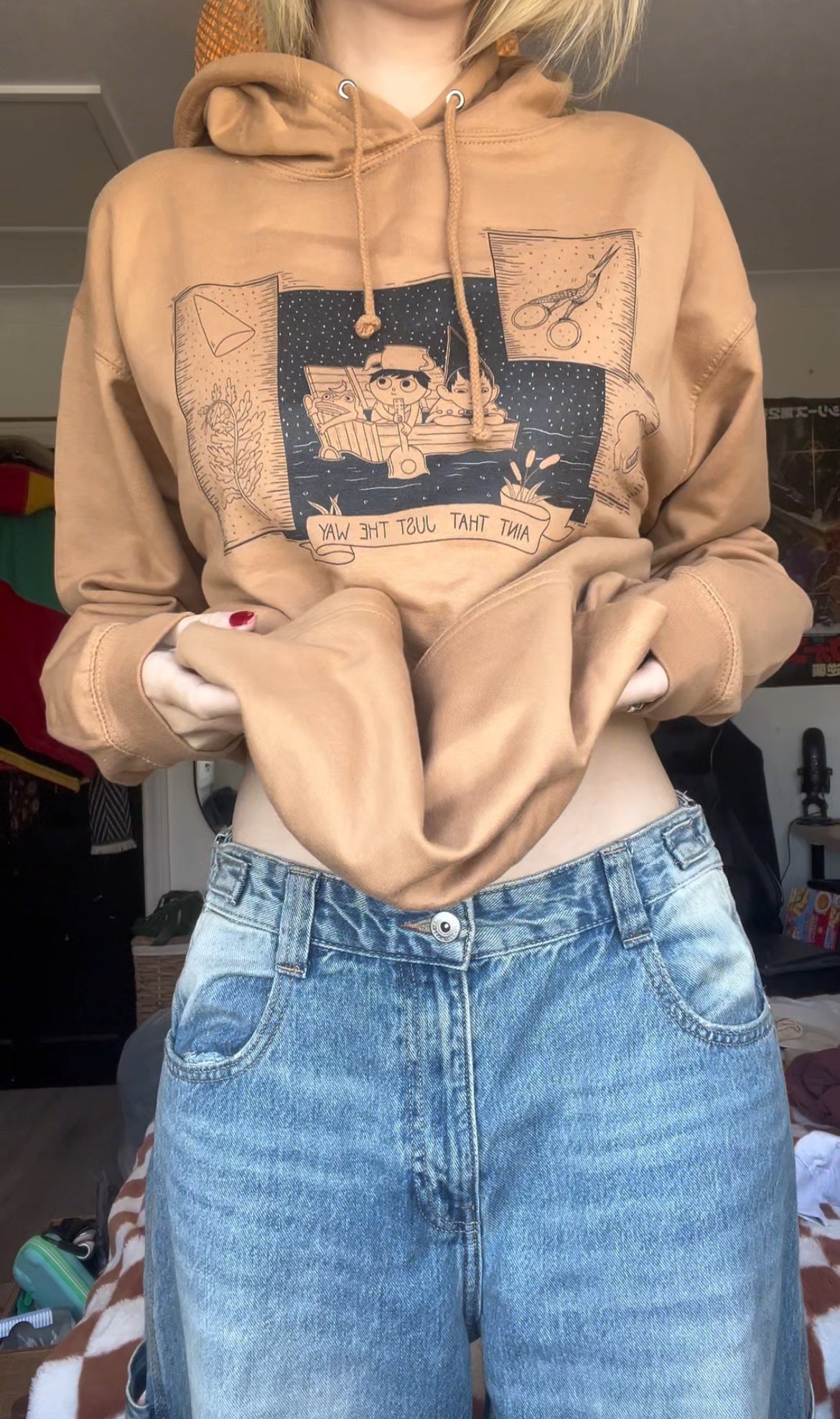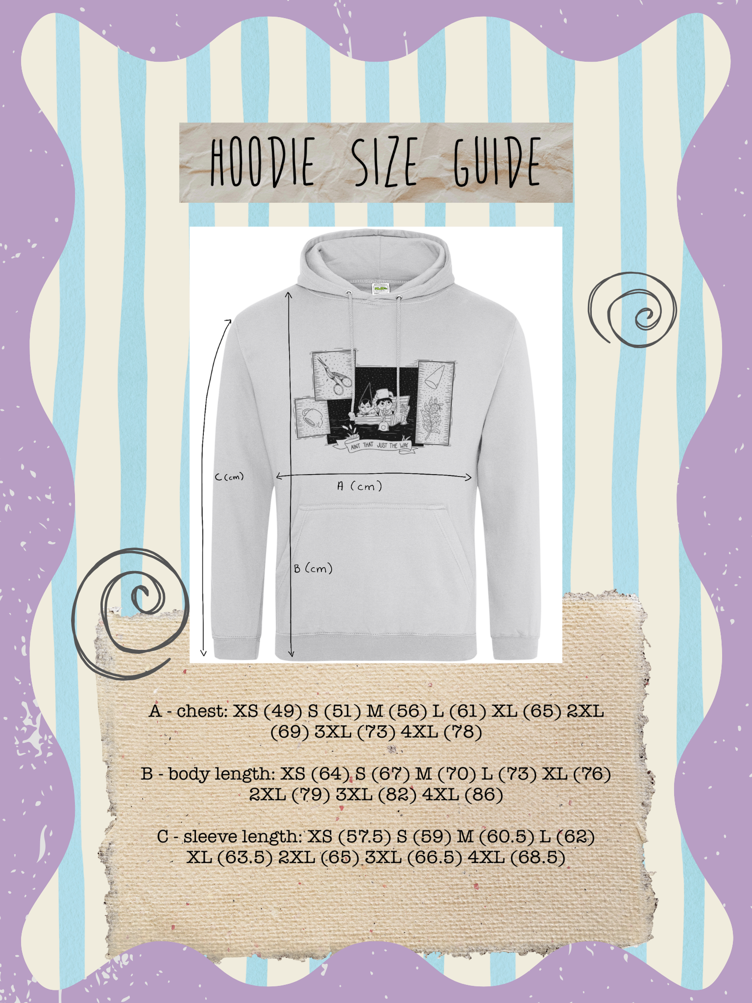 The coziest fall hoodie! These hoodies are super soft and warm with a unisex fit so they're suitable for everyone:) They come in 5 different colours: Ash (light grey), Caramel Latte (orange), Mocha Brown, Dusty Green (the slightly more blue green one pictured) and Earthy Green. Available in a range of sizes, perfect for your cozy Over the Garden Wall annual autumnal rewatch!